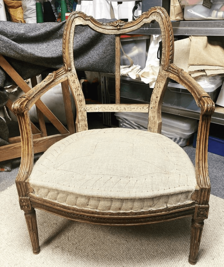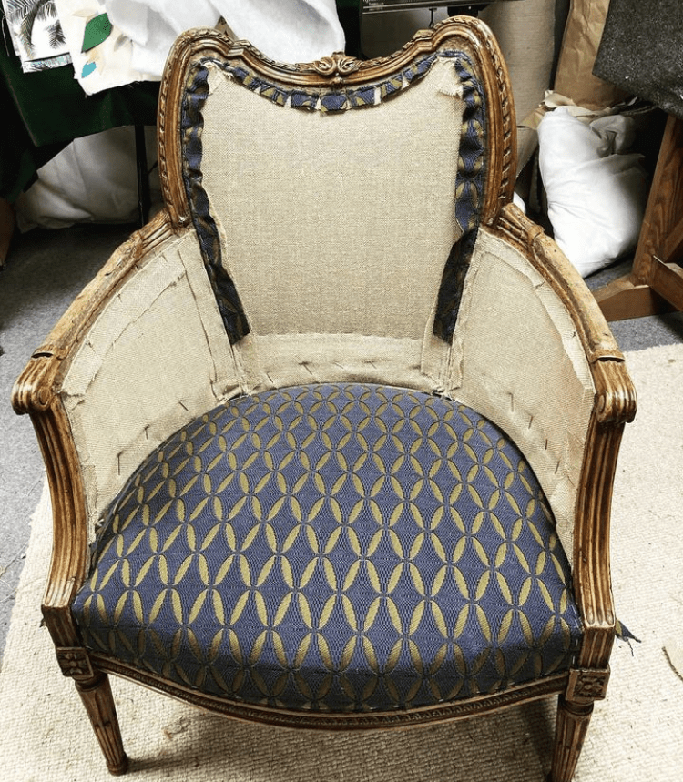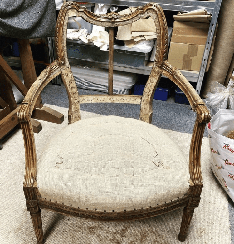 Pour cette bergère Louis XVI, la cliente souhaitait retirer le coussin d’origine.